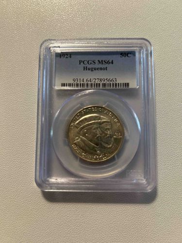 This commemorative coin was issued in 1924 to celebrate the 300th anniversary of the arrival of the first Walloon and Huguenot settlers in what is now New York. The Huguenots were French Protestants who faced persecution in France and many fled to other countries, including the New World.