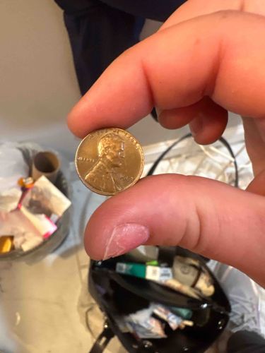 The coin shows the profile of Abraham Lincoln on the obverse. The facial details and the lettering around the edge appear worn but still legible. The color suggests a copper composition.