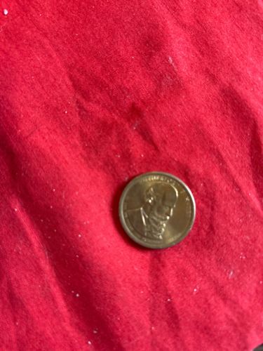 The coin clearly depicts the profile of George Washington on the obverse. This is a golden-colored coin, appearing to be a modern U.S. Dollar coin.