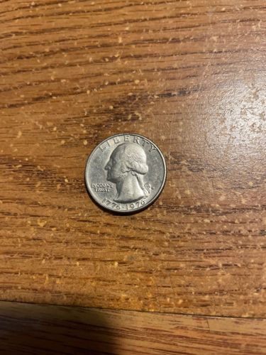 The obverse (front) of the coin features a portrait of George Washington, above which the word 'LIBERTY' is inscribed. To his left, 'IN GOD WE TRUST' is written vertically, and below him, the dual date '1776 - 1976' is displayed. The reverse (back) of the coin, though not visible in the provided image, typically features a colonial drummer and a victory torch within a circle of thirteen stars.