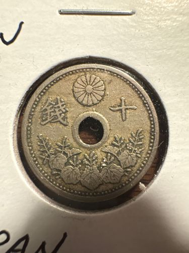 This coin was issued during the early Showa era under Emperor Hirohito. Nickel was used for these coins until the increasing military demands of the Second Sino-Japanese War led to the transition toward cheaper base metals like aluminum and bronze.