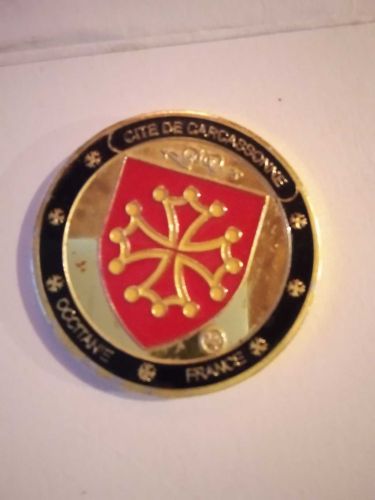 This is a modern commemorative token produced by companies like Monnaie de Paris or similar private mints as a souvenir for visitors to the Cité de Carcassonne, a medieval fortified city in southern France and a UNESCO World Heritage site. The central image is the Cross of Toulouse, a symbol of the Occitania region.