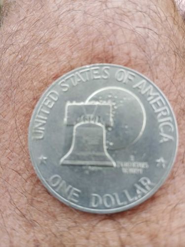 The reverse side features the Liberty Bell superimposed over the moon, with the text 'UNITED STATES OF AMERICA' and 'ONE DOLLAR'.