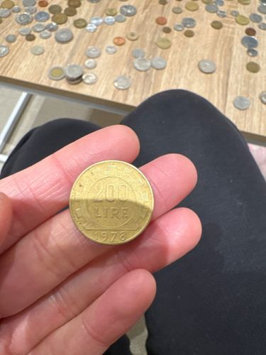 Introduced in 1977, the 200 Lire was a common circulation coin in Italy until the adoption of the Euro in 2002. The cogwheel motif symbolizes the value of labor, referencing the first article of the Italian Constitution which states that Italy is a Democratic Republic founded on work.