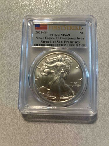 Value varies depending on market conditions and grade. A 2021-S Emergency Issue graded MS69 can command a premium over standard bullion Silver Eagles.