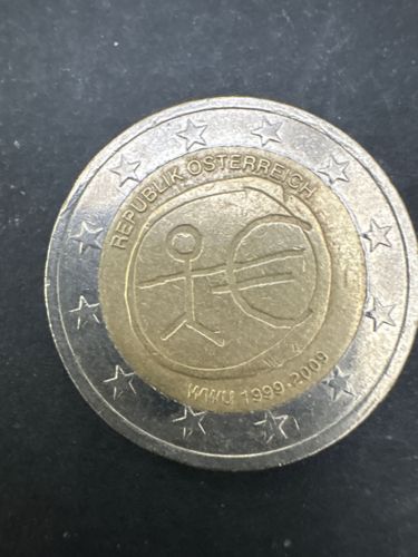 This coin was issued in 2009 by all Eurozone countries to commemorate the 10th anniversary of the establishment of the Economic and Monetary Union (EMU) and the introduction of the euro as a common currency in 1999. The design was chosen through a public vote across Europe and symbolizes the progress and integration of the European economy.