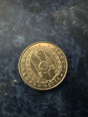 Djibouti, a small nation in the Horn of Africa, issued this coin as part of its circulating currency. The symbols on the coat of arms represent key aspects of Djibouti's national identity, including unity, independence, and the strength of its people. The year 2004 would signify its continued use of its national currency after gaining independence from France in 1977.