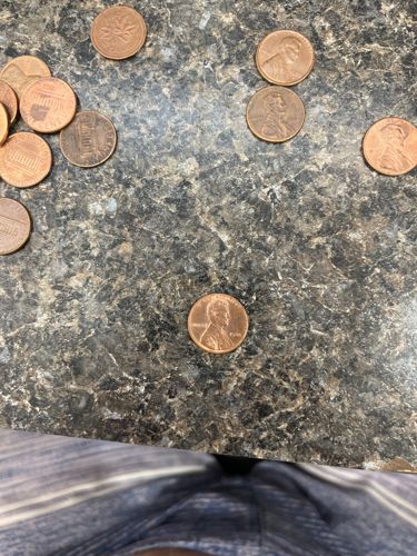 Year of Issue: Various years, as multiple coins are visible. Based on the visible coins, they appear to be modern Lincoln Cents, likely from the late 20th century or early 21st century, with dates typically ranging from 1982 to the present, though older examples like copper pennies might also be present.
