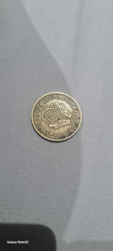 The coin features a Dutch merchant ship (Drommedaris) on the reverse, with the country name 'SOUTH AFRICA' and 'SUID-AFRIKA' inscribed around the edge.