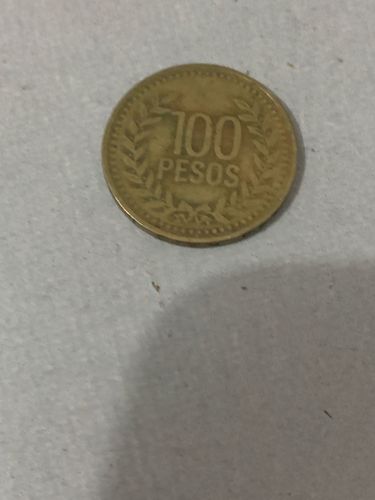 The coin clearly shows '100 PESOS' in the center, surrounded by a laurel wreath design. The metal appears to be a brassy or bronze color, indicating a copper-alloy composition.