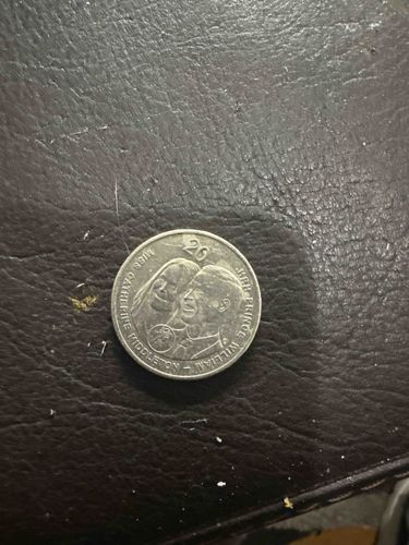 The coin features the portraits of the first president of Botswana, Sir Seretse Khama, and his wife, Lady Khama. It commemorates the legacy of their leadership.