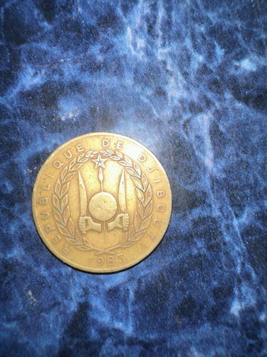 This coin was issued by Djibouti, a country in the Horn of Africa, which gained its independence from France in 1977. Coins from this period represent the early years of the nation's sovereignty and its establishment of its own currency system. The coat of arms depicts symbols important to Djiboutian culture and heritage, signifying unity and independence.