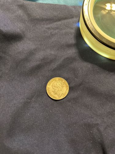 The coin clearly shows a bust of a monarch or emperor on the obverse, surrounded by text, which appears to be in a European language. The overall color suggests it is made of a gold or gold-colored alloy.