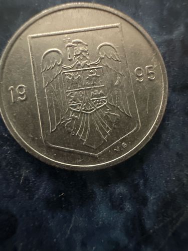 The coin features the Coat of Arms of Romania on the obverse, surrounded by the year '1995'. The reverse typically shows the denomination and other national symbols or inscriptions. The Coat of Arms centrally depicts an eagle holding a cross in its beak, a mace and a sword in its talons, and a shield with symbols representing the historical provinces of Romania.