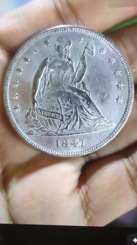 If genuine, an 1847 Seated Liberty Dollar can range from $300 to several thousand dollars depending on grade. If it is a modern replica/counterfeit, it has little to no numismatic value and is worth only its metal content.