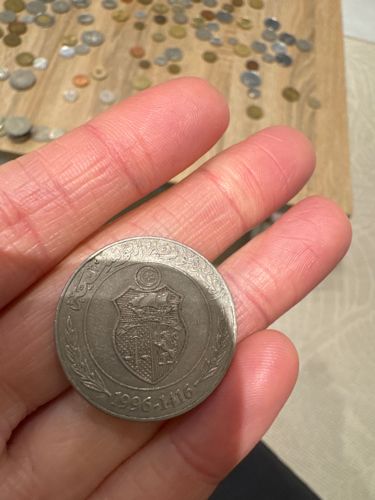 This coin represents the modern Republic of Tunisia. The imagery on the coat of arms symbolizes the national motto: Freedom (the ship), Order (the scales), and Justice (the lion with the sword).