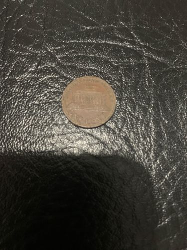 The coin clearly shows the reverse side of a Lincoln Cent, featuring the Lincoln Memorial. The inscription 'ONE CENT' is visible at the bottom, and 'UNITED STATES OF AMERICA' is across the top, though partially obscured in the image.