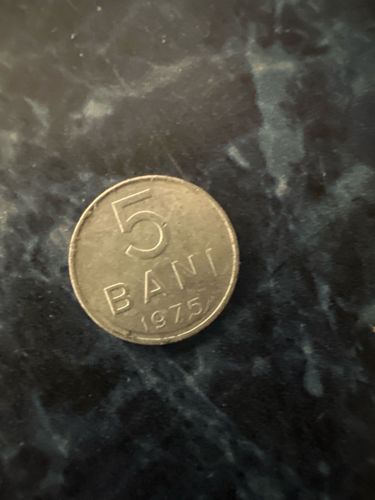 The coin clearly shows the denomination '5 BANI' and the year '1975'. The other side of the coin (not visible) typically features the coat of arms of the Socialist Republic of Romania during that period.