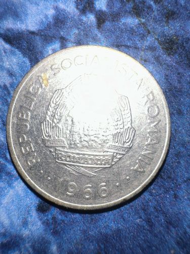 This coin was issued during the communist era of Romania, reflecting the political and economic system in place. The national emblem on the coin is characteristic of socialist heraldry, embodying ideals of industrialization, agriculture, and national independence under the communist regime. The year 1966 falls within the period when Nicolae Ceaușescu was consolidating his power, leading to a more independent foreign policy stance for Romania within the Eastern Bloc.