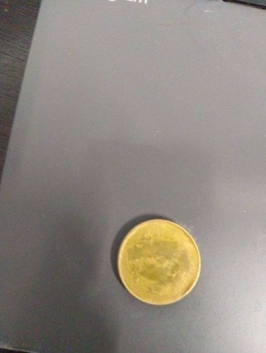 A circular gold-colored coin (due to aging or lighting) featuring the bust of former Prime Minister Indira Gandhi on the obverse, facing right. The reverse typically features the Lion Capital of Ashoka.