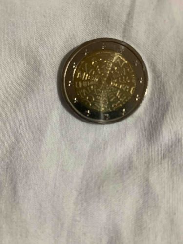 A bi-metallic coin featuring a distinctive design that typically includes a map of Europe and identifiable national symbols, depending on the issuing country.