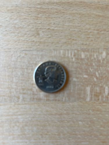 The blurry image shows a silver-colored coin. On the visible side, there appears to be a profile of a person, likely a monarch, facing left, with text or symbols around the rim. The year '2003' is clearly visible below the profile. The overall impression is of a standard circulation coin.