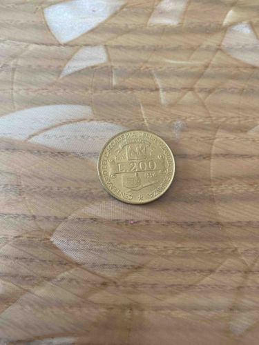 The 200 Lire coin features the depiction of a stylized representation of an Italian emblem on one side and the denomination on the reverse side.