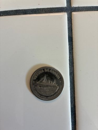 A municipal trade token issued by the city of Victoria, British Columbia. These were commemorative coins usable as currency in local participating businesses during the year of issue to promote tourism and celebrate local history.
