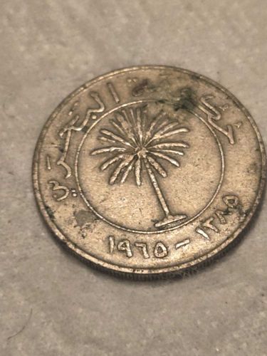 This coin was issued as part of the first coinage of the Bahrain Currency Board after the Bahraini dinar replaced the Gulf rupee. It represents a significant post-colonial transition in Bahrain's monetary history. The palm tree is a traditional symbol of the region's heritage.