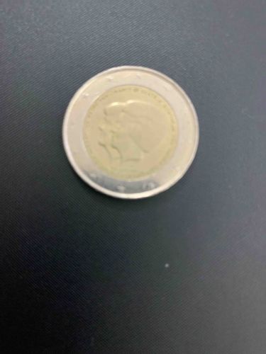 A €1 coin featuring a map of Europe on one side, with varying national designs on the other side depending on the issuing country.