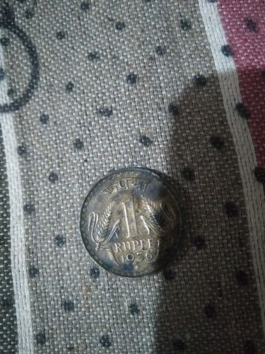 The reverse of the coin features the denomination '1 Rupee' written in Hindi and English, flanked by two stalks of wheat. The obverse typically features the Lion Capital of Ashoka.