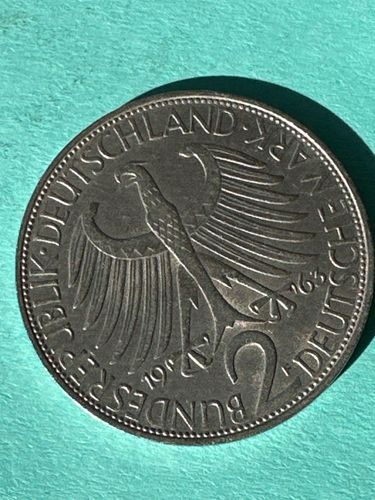 This coin was part of the currency system of West Germany during the 'Wirtschaftswunder' (Economic Miracle) period. The 2 Deutsche Mark coin of this era predominantly featured the heads of prominent German statesmen on the obverse as a way to honor the founding figures of the Federal Republic.