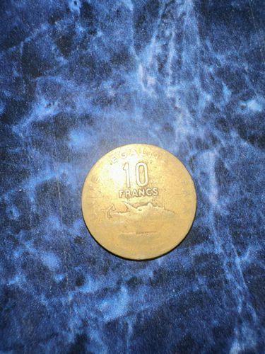 The coin shows the denomination '10 FRANCS' in the center, with 'EGALITE' visible above it. Below the denomination, there is a distinct design featuring a plow and wheat sheaves, symbolizing agriculture and labor. The obverse (not shown) typically features a Marianne head.