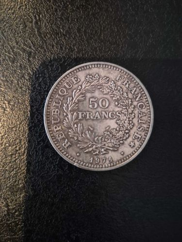 This coin belongs to the Hercules series, a classic French numismatic design first created during the French Revolution. Reintroduced in 1974 during a period of silver currency revival, it served as a large, heavy bullion-standard coin for circulation until silver prices rose too high.