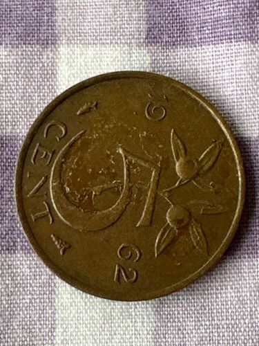 This coin was issued during the reign of Queen Juliana. It represents the post-WWII era of Dutch coinage before the transition to the Euro. The orange branch is a symbolic reference to the Royal House of Orange-Nassau.