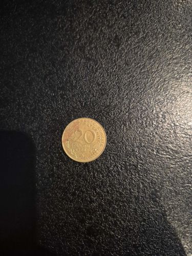 The reverse features the numeral 20 with 'CENTIMES' below it, surrounded by an olive branch and a wheat ear, with the national motto 'LIBERTE EGALITE FRATERNITE' along the rim.