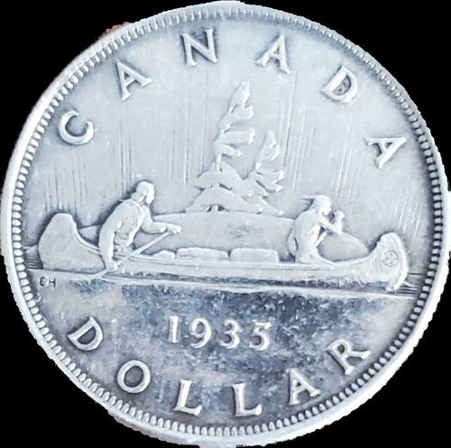 This was Canada's first circulating silver dollar, issued to commemorate the Silver Jubilee of King George V. The design by Emanuel Hahn symbolizes the early fur trade that shaped Canada.