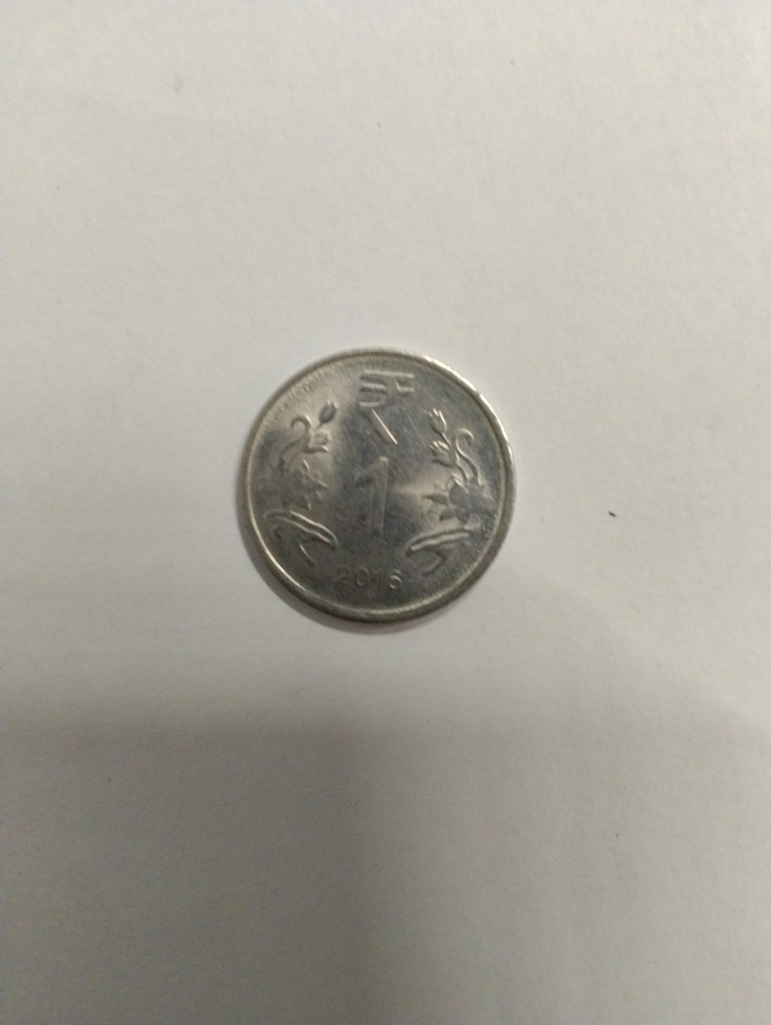 The Rupee symbol '₹' and numeral '1' in the center, flanked by stylized floral patterns. The year '2016' is at the bottom.