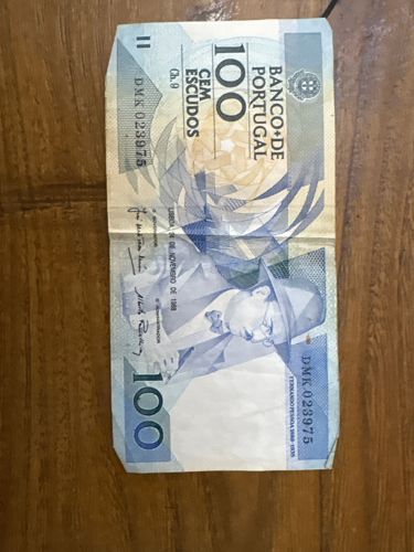 This 100 Escudos banknote features Fernando Pessoa (1888-1935), one of the most significant literary figures in Portuguese history and a major poet of modernism. His inclusion on the currency highlights his cultural importance to Portugal. The Escudo was the currency of Portugal from 1911 to 2002, when it was replaced by the Euro. This particular banknote series (likely the 1988 issue based on the visible date 'NOVEMBRO DE 1988') reflects the monetary system in place during a period of significant economic and political changes in Europe leading up to the adoption of the Euro. It represents a piece of Portugal's recent monetary history before the European monetary union.