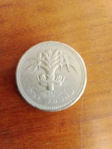 This coin belongs to the first series of the round UK pound coins introduced in 1983 to replace the one-pound note. This specific leek design represents Wales as part of a series honoring the four home nations of the UK.