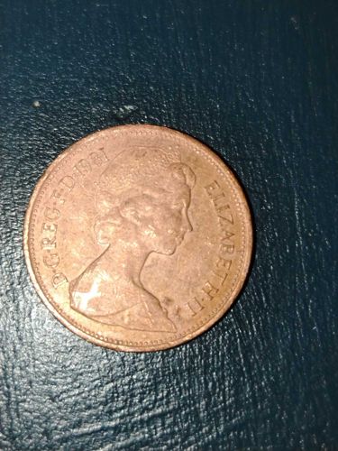 The 1981 two pence coin was a standard circulating coin in the United Kingdom following decimalization in 1971. This particular year is notable as being the final year the words 'NEW PENCE' were inscribed on the reverse before changing to 'TWO PENCE' in 1982.