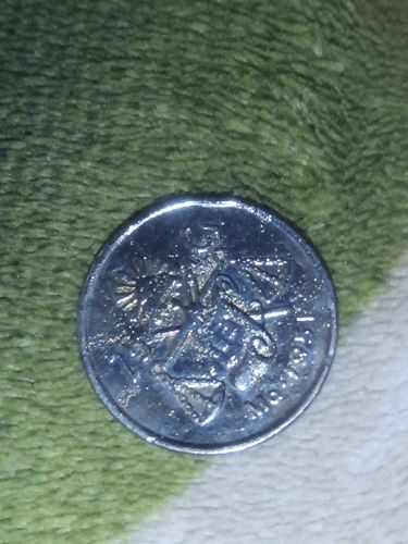 A small, silver-toned coin-like object featuring the Winged Victory (Angel of Independence) on the obverse, with 'Mexico' written at the bottom. The details appear somewhat crude compared to official mint strikes.