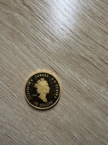 The coin features a portrait of Queen Elizabeth II on the obverse, facing right, with the inscription "ELIZABETH II CANADA D.G. REGINA" and the year "1982". Below the portrait, the denomination "1/75 DOLLARS" is visible. The reverse, though not pictured, typically features a maple leaf design.
