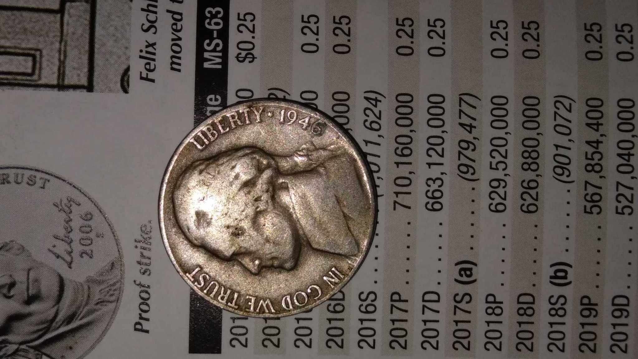 1946 marked the return to the standard cupronickel composition for the Jefferson Nickel following the conclusion of World War II, during which 'War Nickels' were made of a silver alloy to conserve nickel for the war effort.