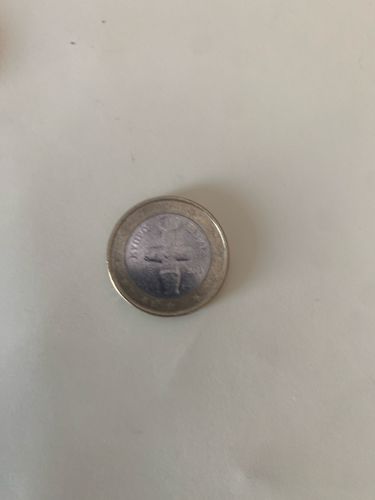 The visible side of the coin, which appears to be the obverse, features what looks like a stylized figure or symbol in the center, possibly a representation of the 'Tree of Life' or a similar abstract design. The outer ring is a different metallic color, typically gold-colored, while the inner core is silver-colored. The image quality makes specific details and inscriptions challenging to decipher fully, but it strongly resembles a common circulating European coin.